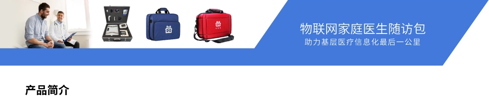 物聯網家庭隨訪包是醫生用與上門服務的綜合工具,是一種便攜式、多功能可實現上門體檢、檔案建立、隨訪管理等一系列健康管理服務功能的綜合套裝。該設備由平板電腦、藍牙二代身份讀取器及藍牙數據采集系統。體檢參數包含十二導心電,血壓,血氧,血糖,體溫,尿常規等,體檢數據可以與云健康管理平臺對接,利用現有的信息和移動互聯網,實現醫療保障,醫療服務,健康信息的共享。